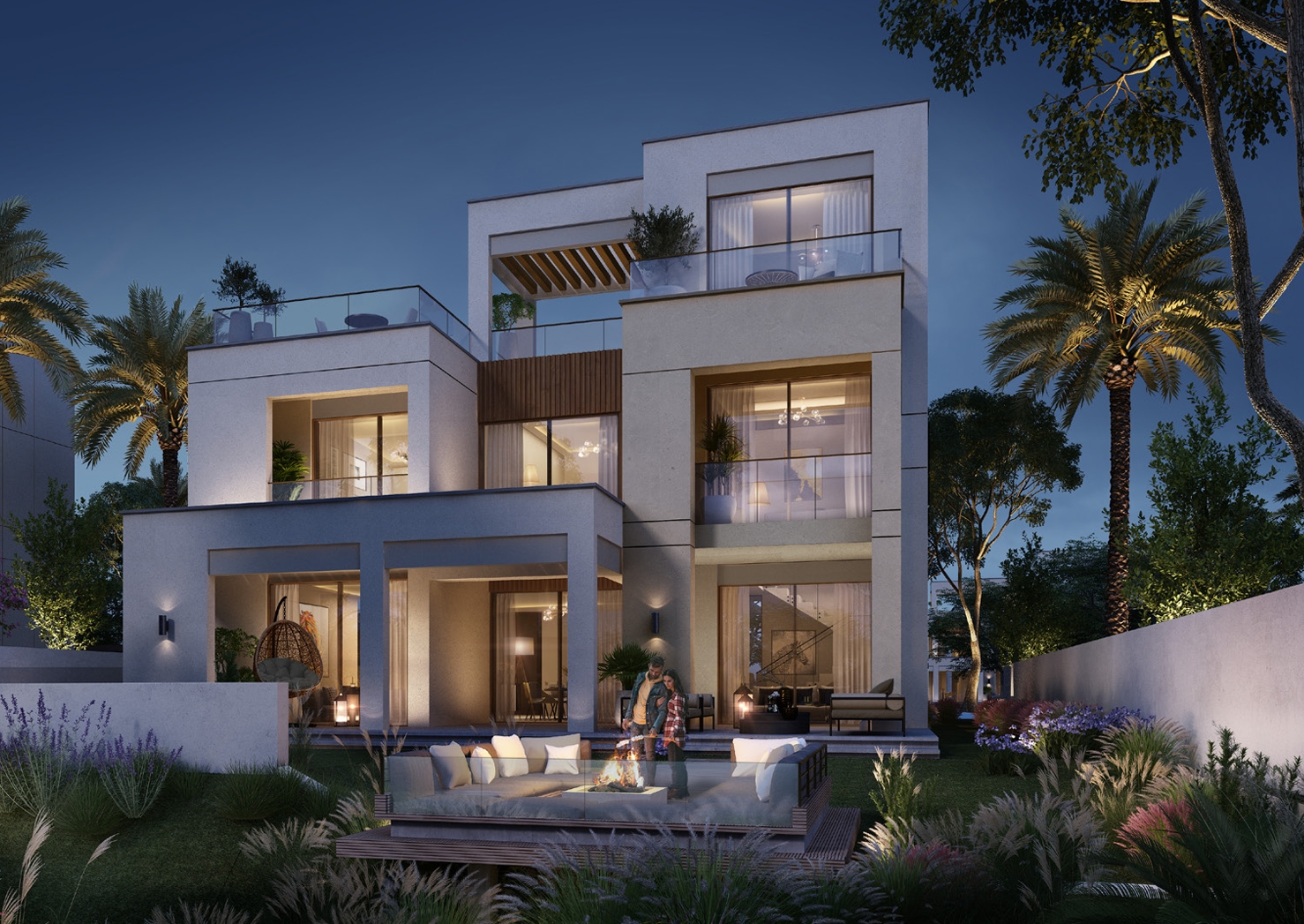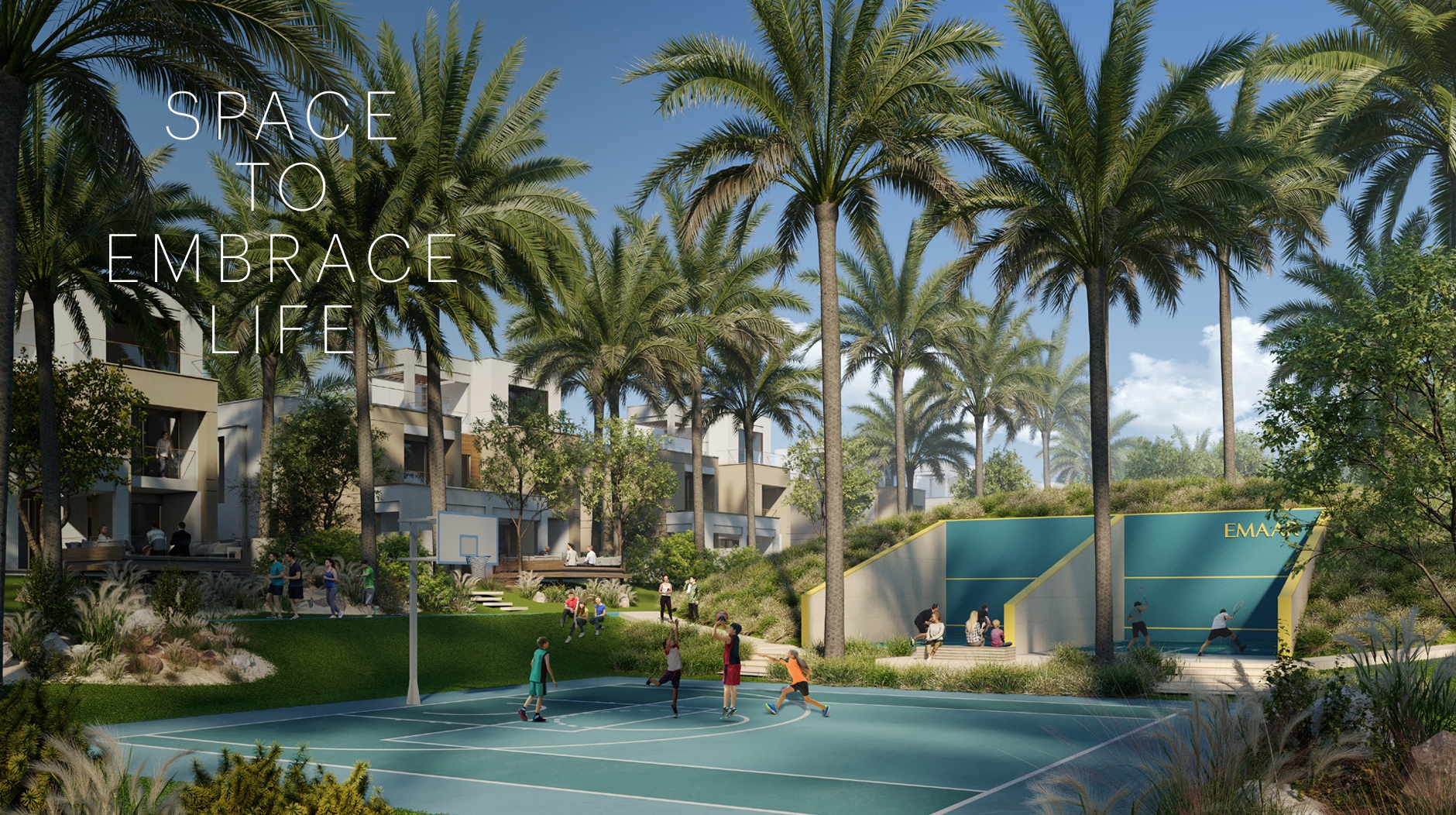 • The modern 5-bedroom standalone villas face directly onto the central park and offer 5,484 SQ FT of living space.